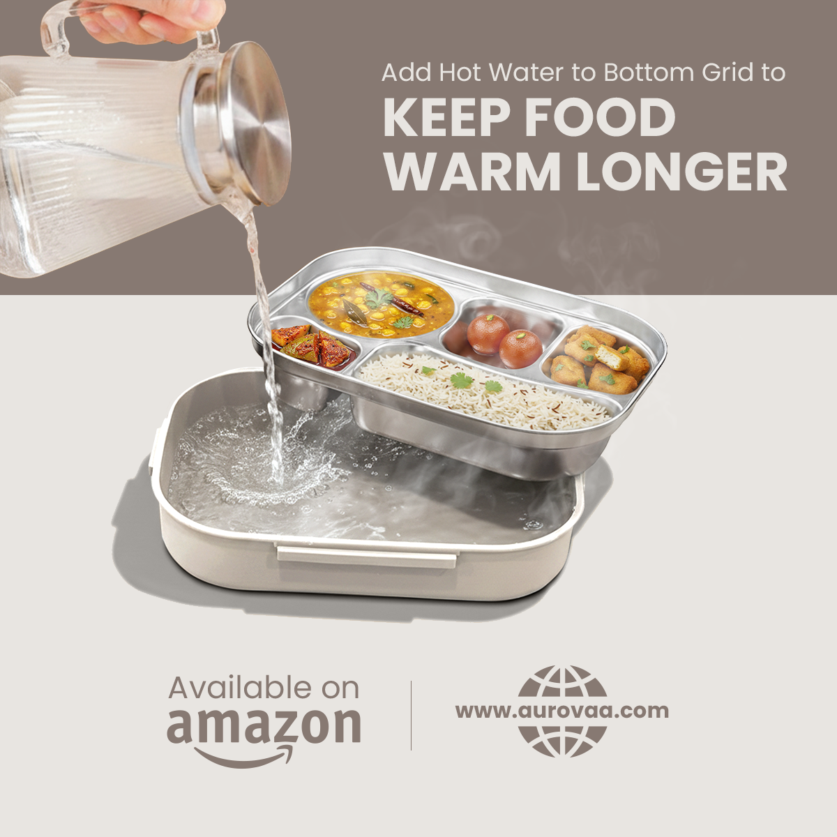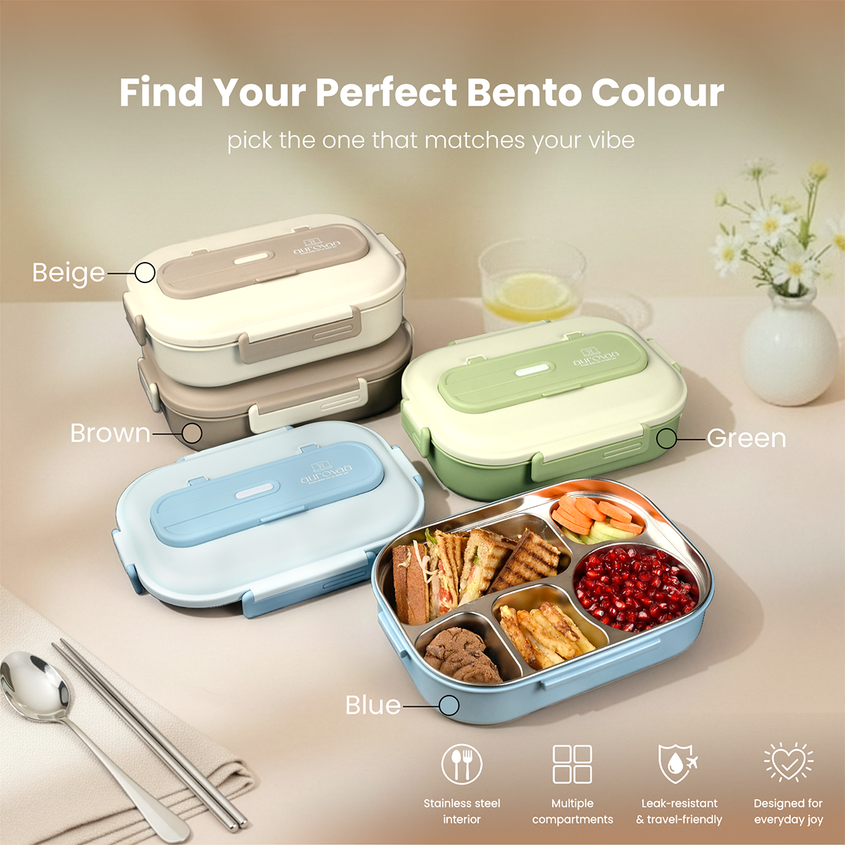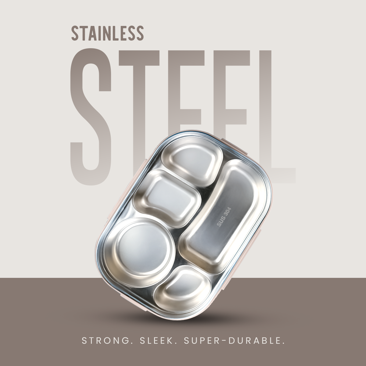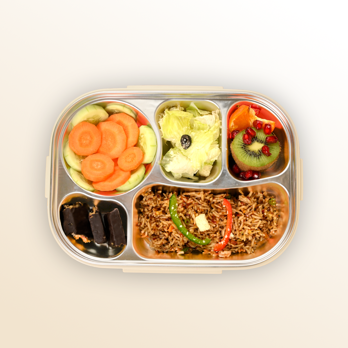 The Aurovaa Stainless Steel Bento Box makes everyday meals simple, stylish, and eco-friendly. With 5 compartments, a leak-proof lid, and included spoon & chopsticks, it’s perfect for balanced meals at school, work, or on the go. Durable, reusable, and easy to clean — your daily companion for packing joy in every bite.