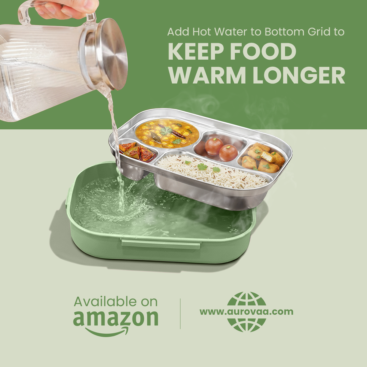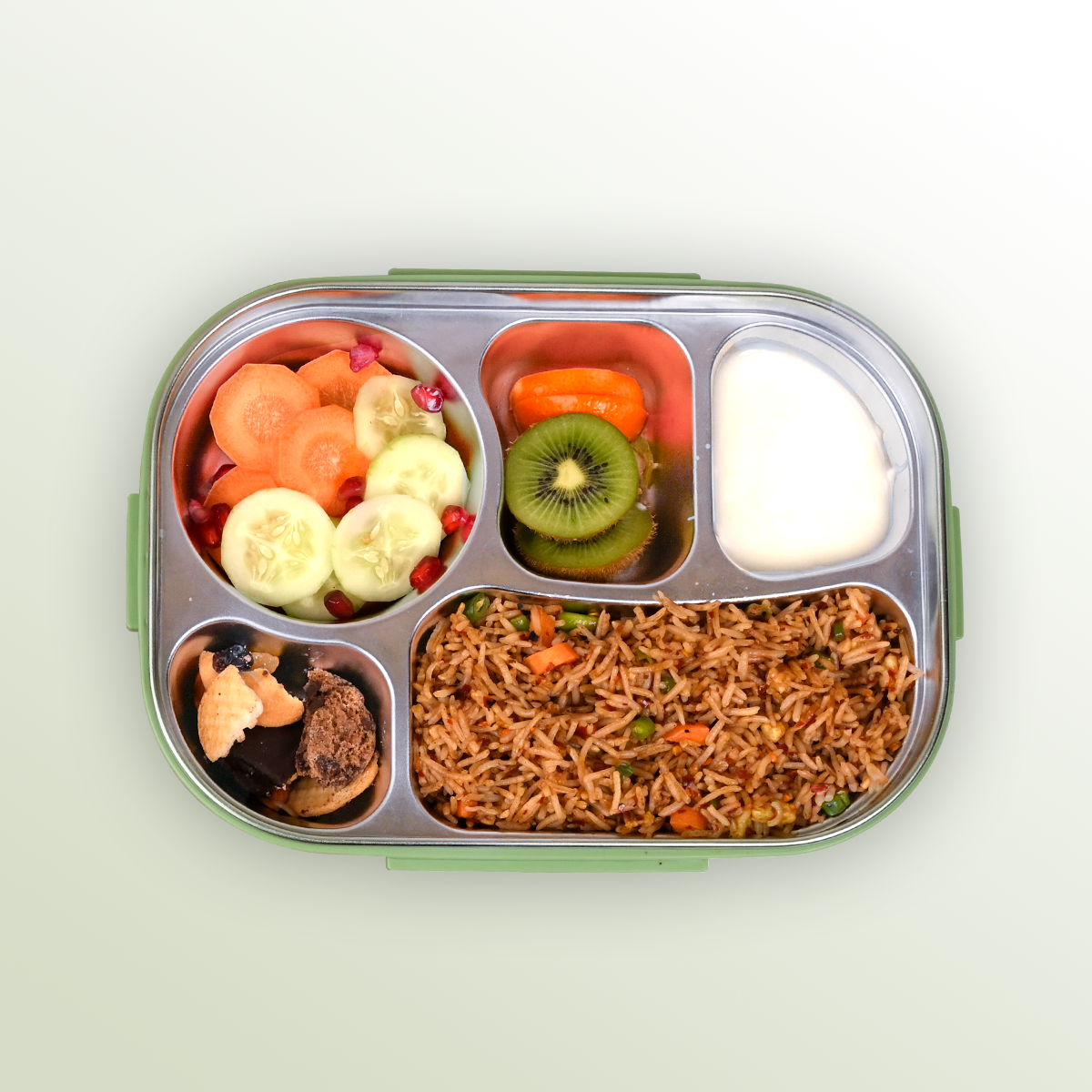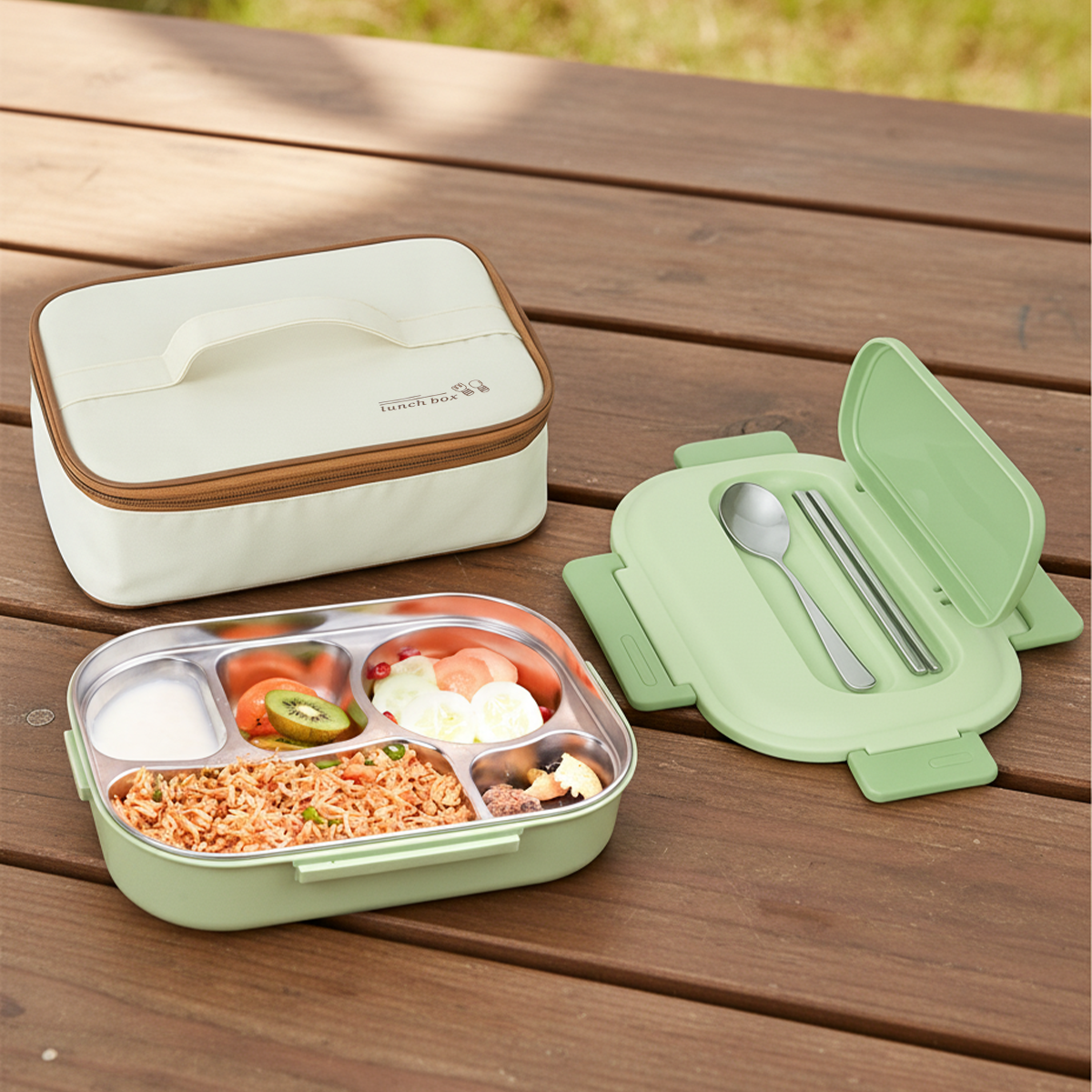 The Aurovaa Stainless Steel Bento Box makes everyday meals simple, stylish, and eco-friendly. With 5 compartments, a leak-proof lid, and included spoon & chopsticks, it’s perfect for balanced meals at school, work, or on the go. Durable, reusable, and easy to clean — your daily companion for packing joy in every bite.